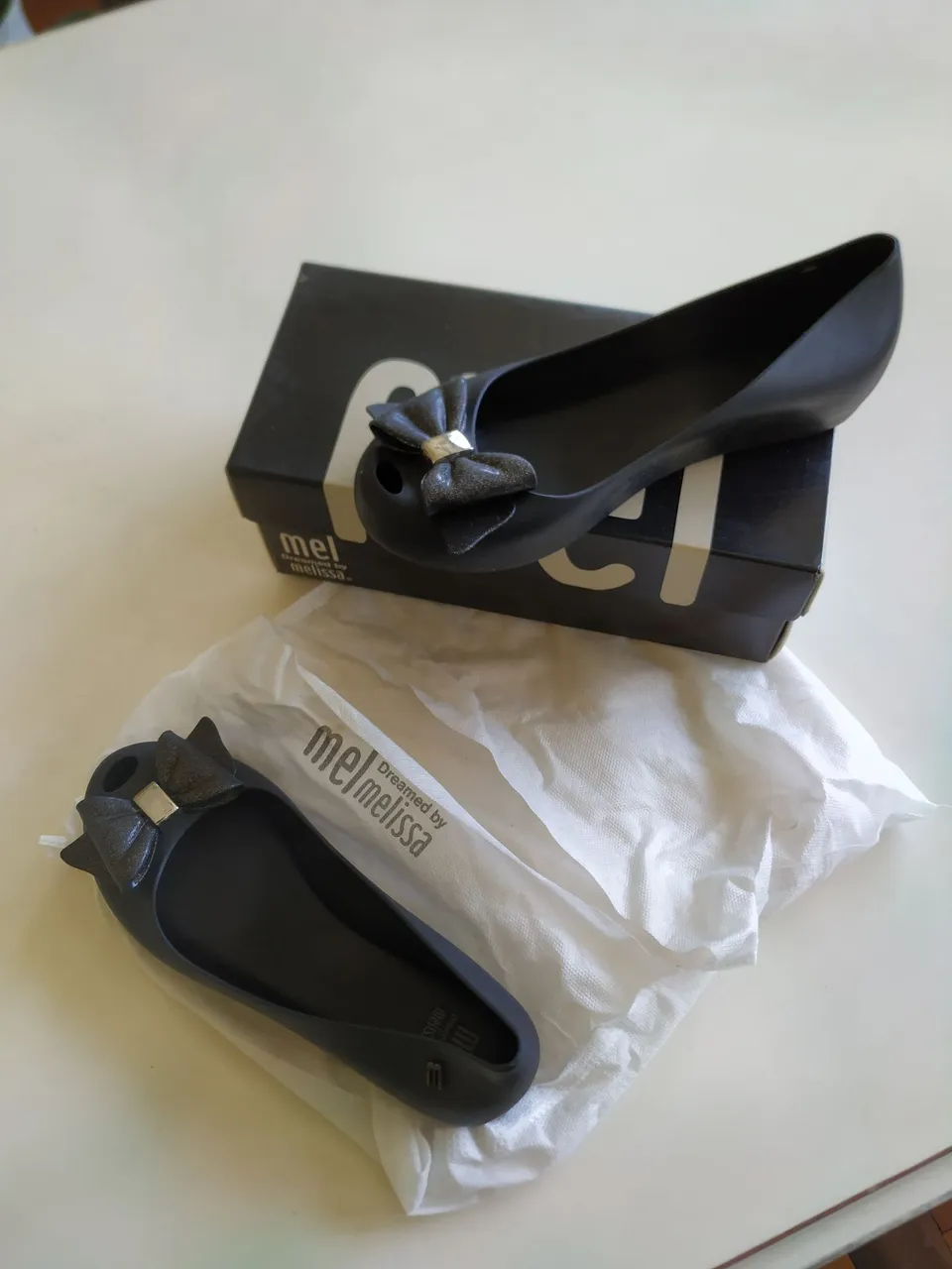 Sapatilha Melissa preta com detalhe de laço. Design moderno e confortável para diversas ocasiões.