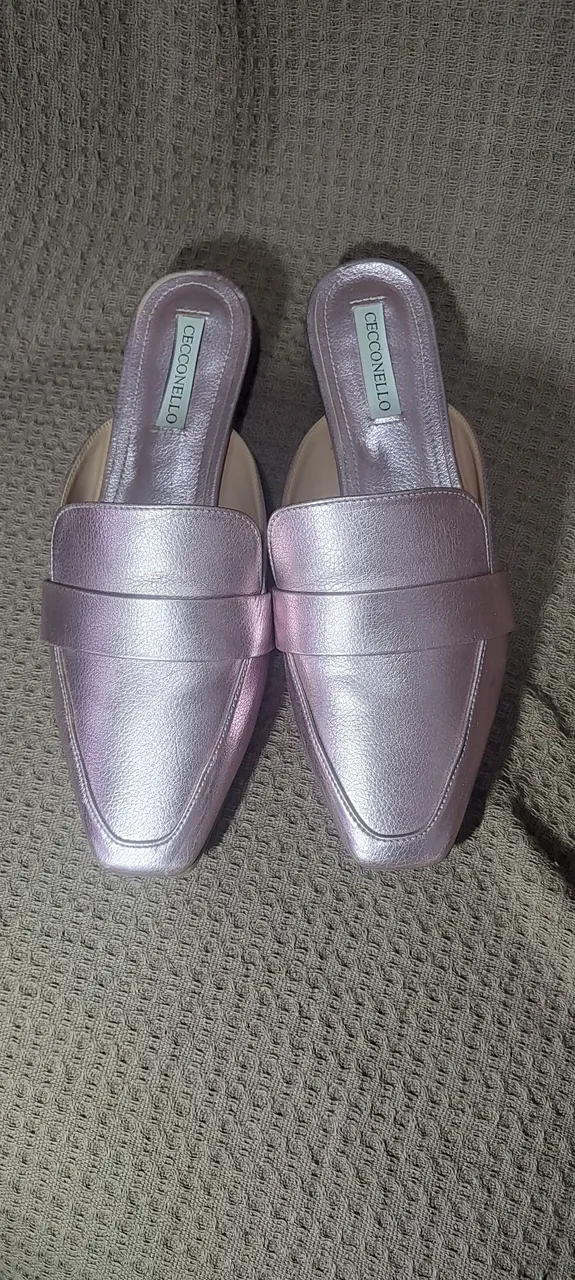 Mule rosa metalizada da Cecconello, moderna e estilosa, perfeita para compor looks elegantes e confortáveis. Número 37 pouco uso.