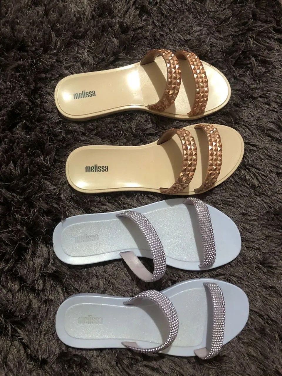 Lindas sandálias Melissa, confortáveis e estilosas, perfeitas para diversas ocasiões. Cada uma 40,00