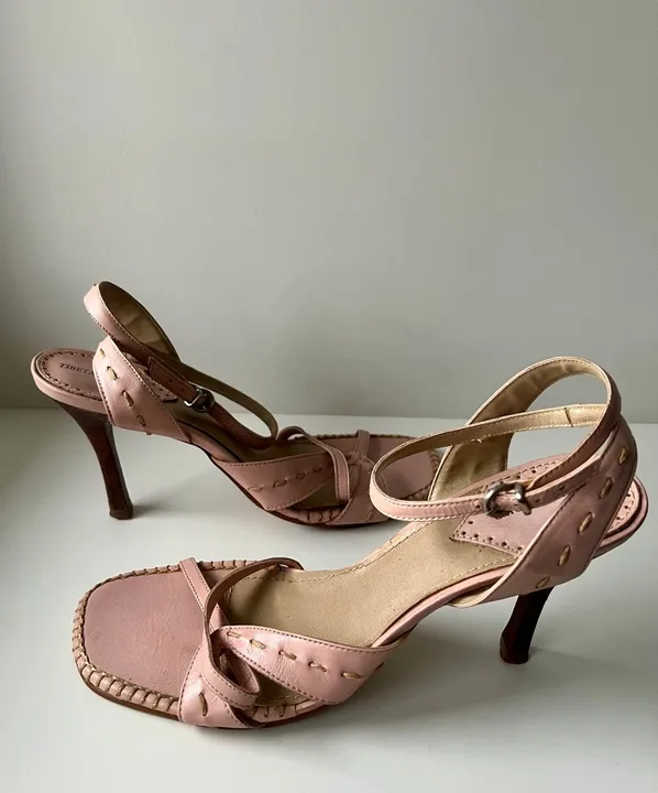 Sandália de couro rosa claro c/ salto de madeira e detalhes em corda nude, tamanho 38, salto 9,5cm, marca Tibetan Terrier, pouco usada