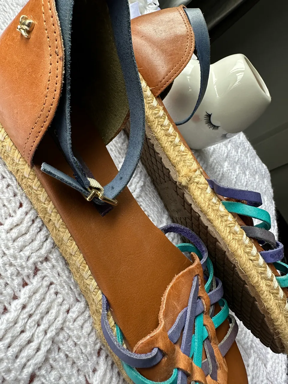 Sandálias de design exclusivo, com detalhes em couro e solado em espadrille. Conforto e estilo para o seu dia a dia. Design moderno e cores vibrantes que combinam com tudo.