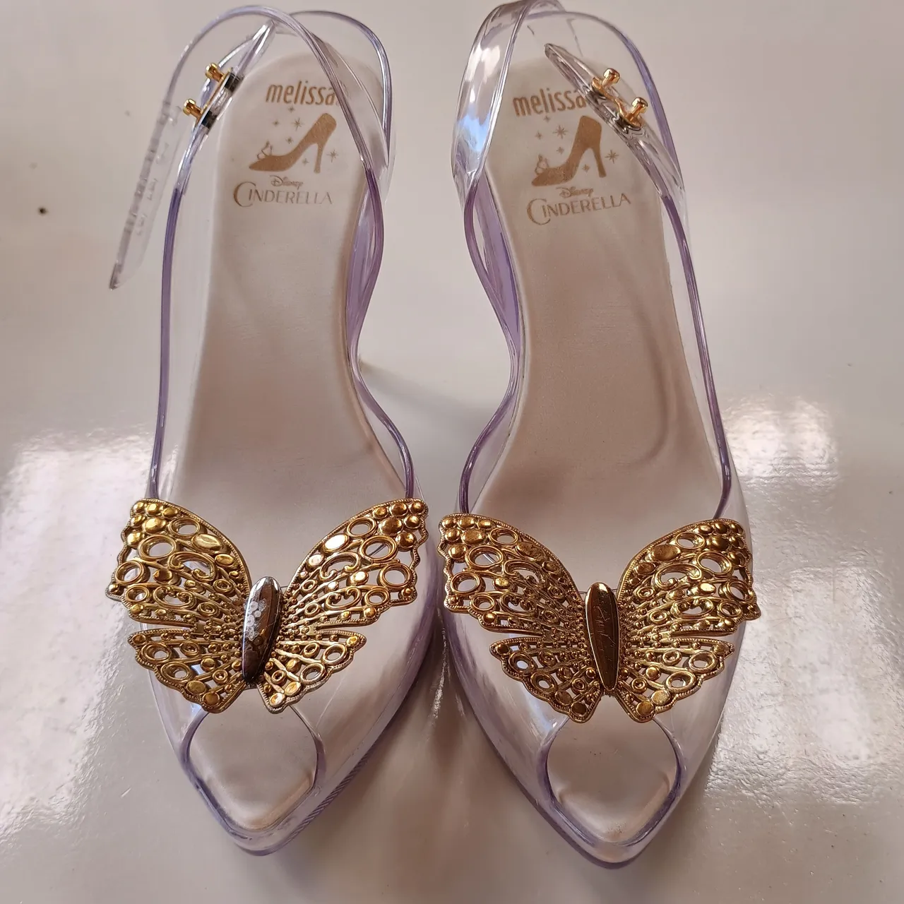 Encante-se com a magia da sandália Melissa Cinderela! Um toque de conto de fadas para seus pés, com design transparente e detalhes dourados de borboleta que brilham. Um calçado perfeito para quem busca estilo e elegância. Está com um pequeno desbotado no laço,mas já usei normalmente Entrega a combinar.