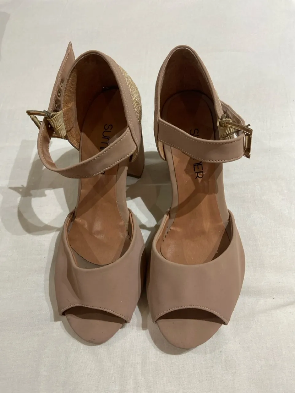 Sandália nude elegante e versátil, perfeita para diversas ocasiões. Salto confortável e design moderno, ideal para quem busca estilo e sofisticação. Tamanho 34, salto 7 cm. Pouco usado.