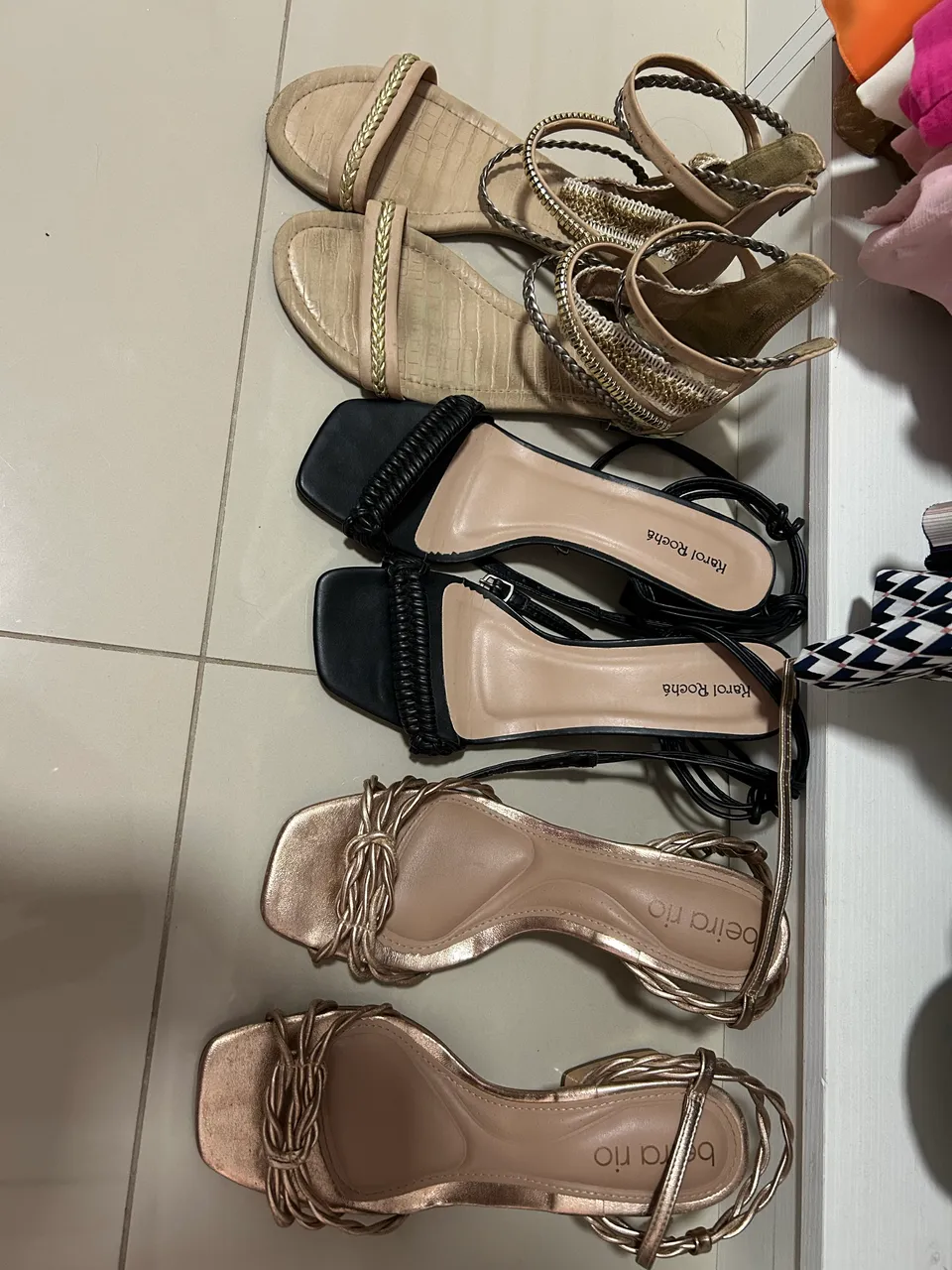 Sandálias femininas número 38, perfeitas para diversas ocasiões. Conforto e estilo em um só produto! Uma rasteira e duas com salto quadrado de 10cm
