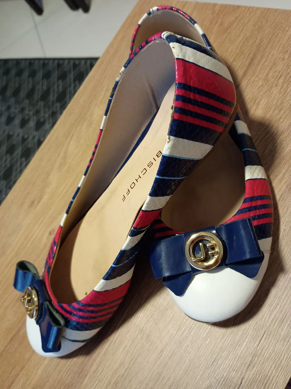 Charmosa sapatilha Jorge Bischoff com design listrado e laço elegante. Ideal para um toque de estilo e conforto em qualquer ocasião.