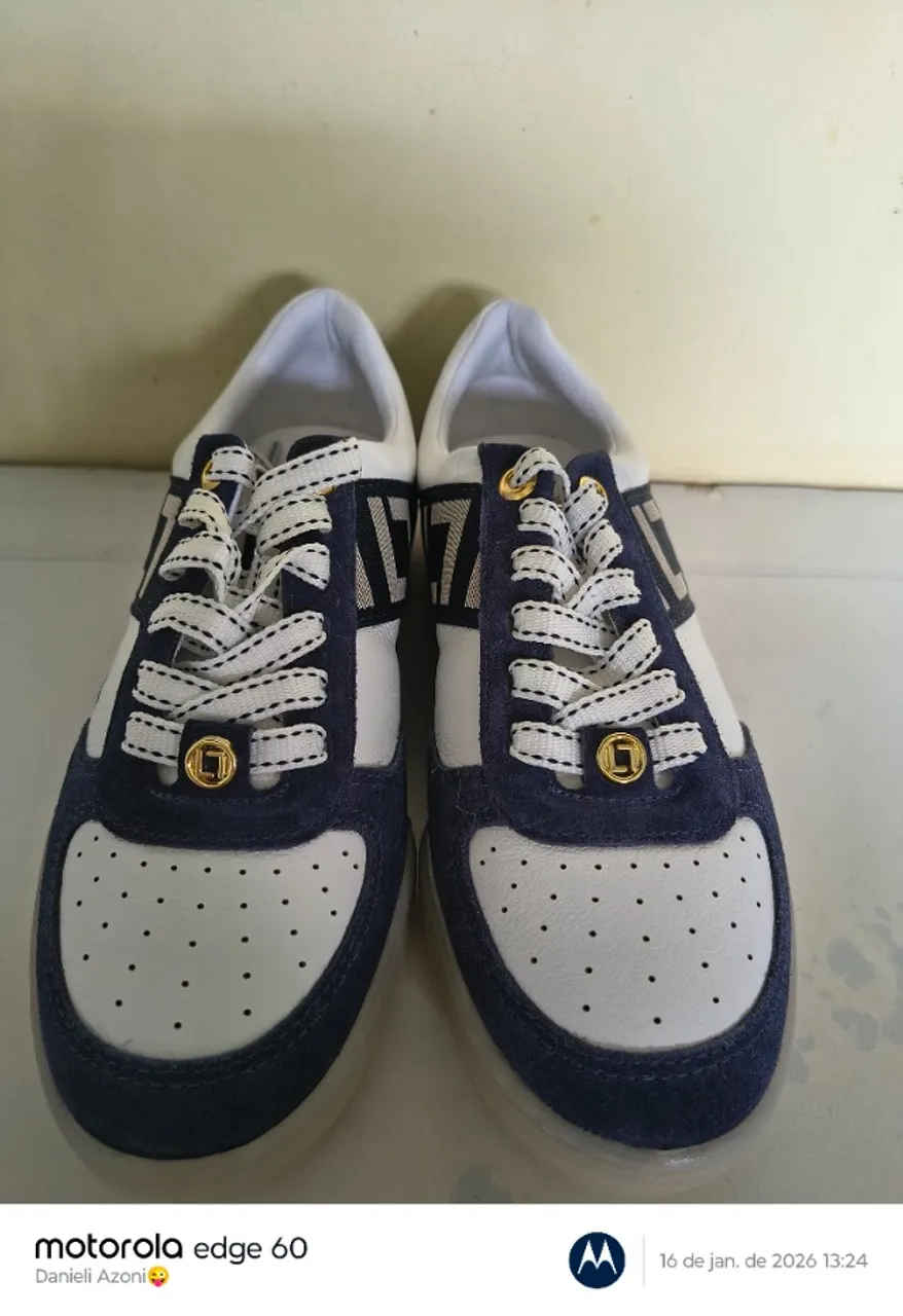 Tênis Luz Da Lua Couro e Camurça,novo,nunca usado.Super confortável. Detalhes no cadarço azul com branco e detalhe da marca.