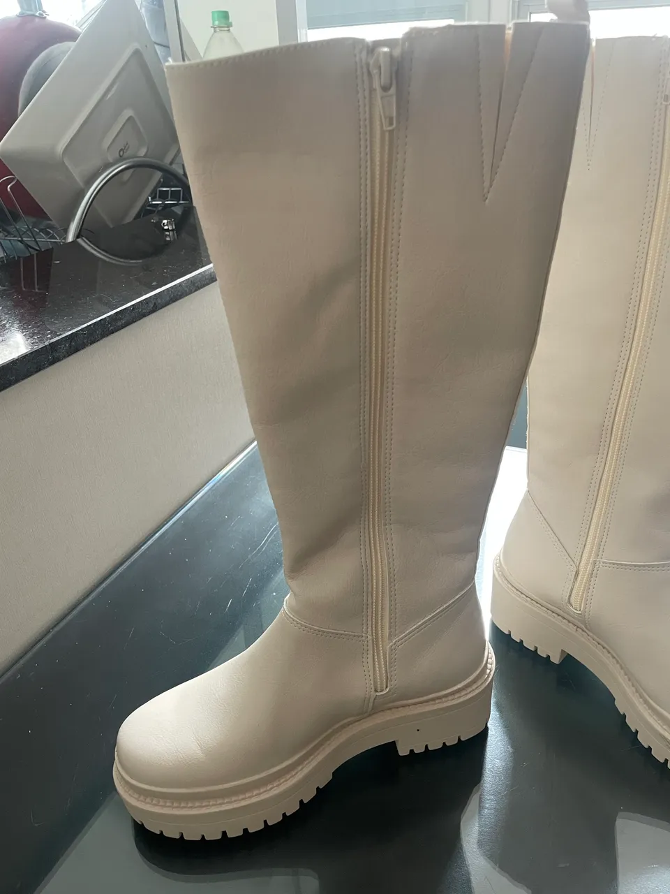 Botas femininas em tom neutro, perfeitas para diversas combinações. Design moderno e confortável, ideal para o dia a dia. Estou vendendo bota nova nunca usada