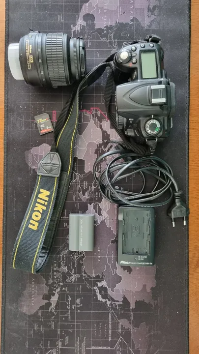 Câmera Nikon D90 em excelente estado, perfeita para iniciantes na fotografia. Inclui lente Nikon DX AF-S Nikkor 18-55mm 1:3.6-5.6G, carregador, bateria, cartão de memória de 8gb e bolsa da forclaz.