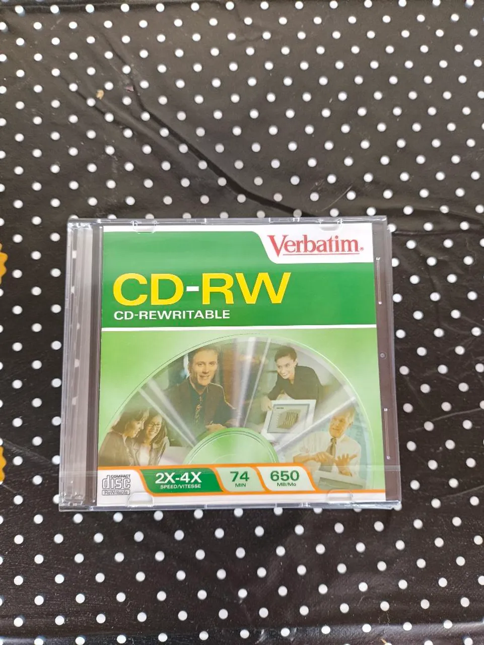 CD-RW Verbatim, ideal para gravar e regravar dados. Capacidade de 650MB e velocidade de 2X-4X.