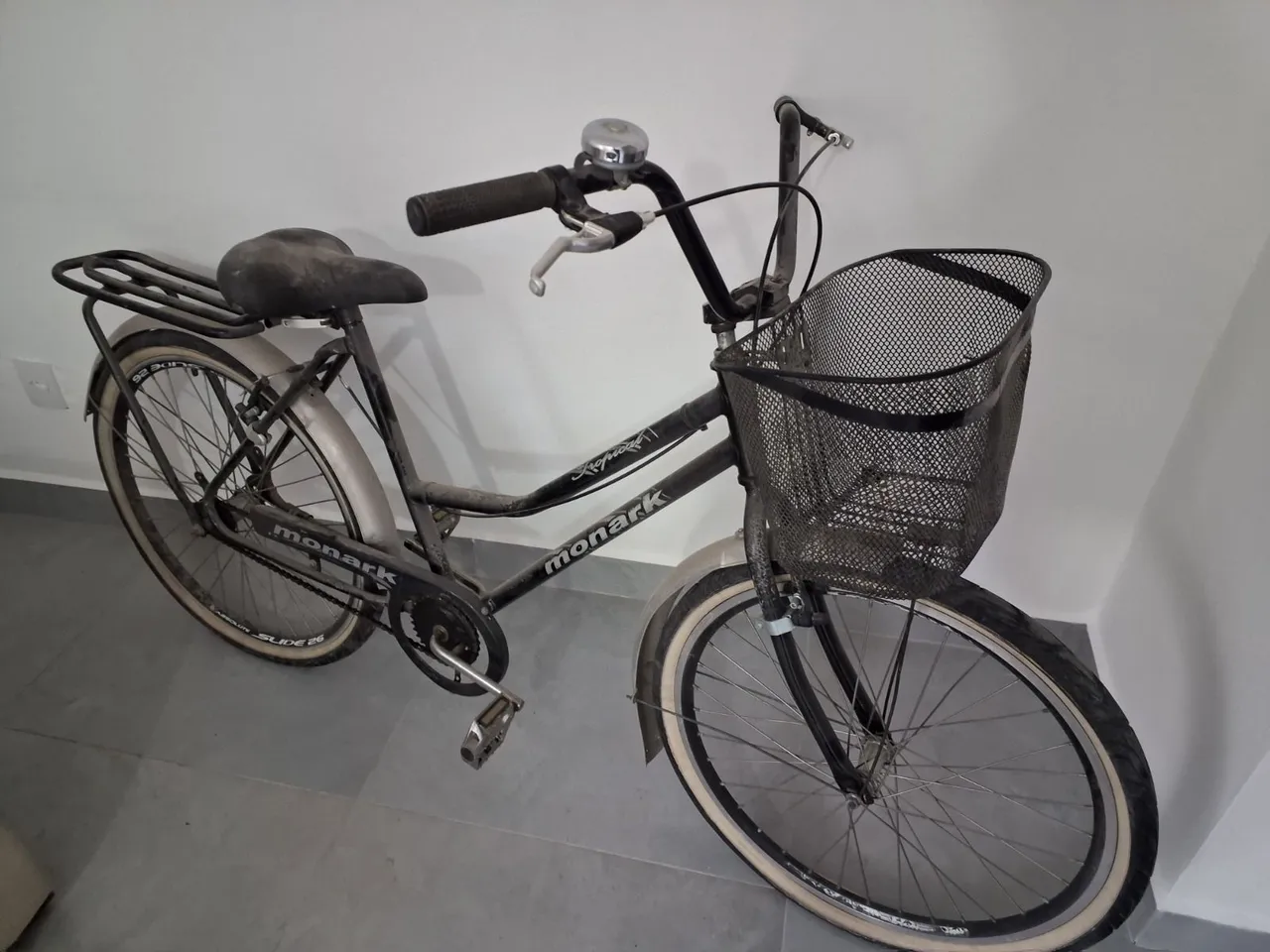 Bicicleta Monark com cesta, ideal para passeios e transporte de objetos.