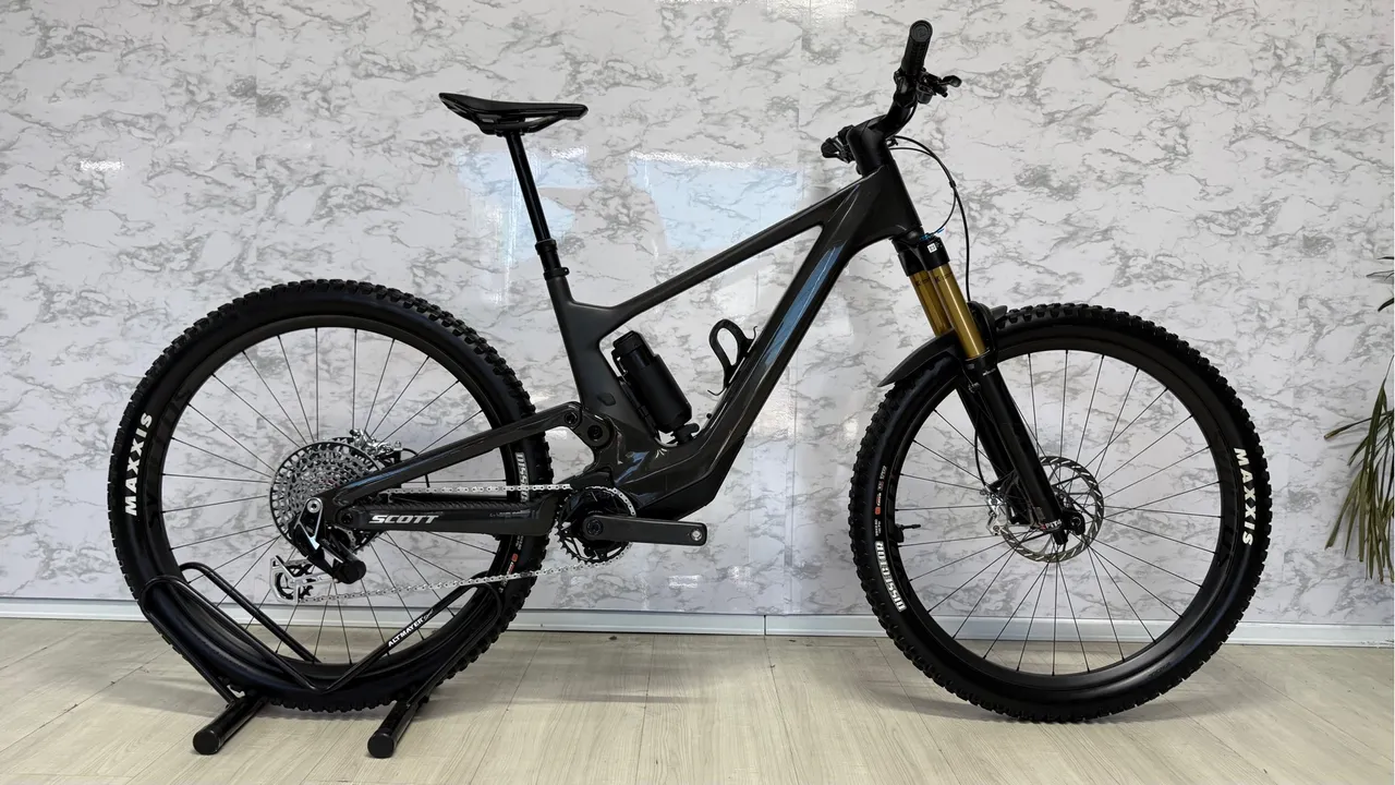 Tamanho L Bike zerada FRAME Carbon HMF Integrated Suspension Technology Virtual 4 Link kinematic / Adjustable head angle Syncros Cable Integration System TQ HPR50 / UDH Interface / 12x148mm with 55mm Chainline Range Extender Ready TRAVEL Front: 160mm / Rear: 155mm FORK FOX 36 Float Factory Air / Kashima FIT4 3 modes with low Speed adj. / Kabolt 15x110mm axle 44mm offset / tapered steerer / Reb. Adj. / Lockout 160mm travel REAR SHOCK FOX NUDE 6T Factory EVOL Trunnion SCOTT custom w. travel / geo adj. 3 modes: Lockout-Traction Control-Descend Low Speed Adj. / Custom large Air volume / Kashima / Reb. Adj. Travel 155-100-Lockout / T185X55mm REMOTE SYSTEM SCOTT TwinLoc 2 Technology Suspension & Dropper Remote 3 Suspension modes DRIVE UNIT TQ HPR50 Mid Motor drive 50Nm max Torque / EU: 25kmh / US: 20mph BATTERY TQ Internal 360Wh + Range Extender 160Wh DISPLAY TQ HPR Bluetooth / ANT+ / Dedicated Smartphone app CHARGER TQ 100-240V-4A REAR DERAILLEUR SRAM XX Eagle AXS Transmission 12 Speed Wireless Electronic Shift System SHIFTERS SRAM AXS Pod Ultimate Controller CRANKSET FSA Carbon crankset / 175mm / 34T CHAINGUIDE e*thirteen / e*spec Slider CHAINRING Scott custom spider / SRAM Eagle Transmission 34T chainring CHAIN SRAM CN XX Eagle Transmission CASSETTE SRAM XX Eagle XS 1297 Transmission 10-52 BRAKES SRAM Code Ultimate Stealth 4-Piston Disc ROTOR SRAM HS2 Rotors F&R 200mm HANDLEBAR Syncros Hixon iC Carbon Size S & M 15mm rise / Size L & XL 25mm rise back sweep 8° / 780mm Syncros Endurance lock-on grips SEATPOST Syncros Duncan Dropper Post 1.5S / Travel Adjust / 31.6mm S size 140mm / M size 180mm / L & XL size 210mm SEAT Syncros Tofino SL Regular 1.0 Carbon rails HEADSET Syncros - Acros Angle adjust & Cable Routing HS System Stainless / +-0.6° head angle adjustment ZS56/28.6 - ZS56/40 MTB WHEELSET Syncros Revelstoke 1.0S-30 CL F: 15x110mm R: 12x148mm 30mm Tubeless ready Carbon rim 28H DT Swiss 240 Ratchet EXP 36 / XD Driver SRAM TyreWiz / Syncros Axle w/Removable Lever with 6mm Allen T30 and T25 Tools FRONT TIRE Maxxis Dissector / 2.6" / 60TPI Foldable Tubeless Ready / EXO 3C maxx Terra REAR TIRE Maxxis Dissector / 2.6" / 60TPI Foldable Tubeless Ready / EXO 3C maxx Terra EXTRAS SRAM TyreWiz Syncros Fork Fender SRAM AXS Extension Cord APPROX WEIGHT IN KG 17.9 (tubeless / without range extender) APPROX WEIGHT IN LBS 39.46 (tubeless / without range extender) MAX. SYSTEM WEIGHT 128kg O peso total inclui a bicicleta, o ciclista, o equipamento e eventual bagagem adicional. Desfrute de cada pedalada com esta bicicleta de alta performance, projetada para oferecer o máximo em conforto e eficiência. Equipada com componentes de última geração e design aerodinâmico, ela proporciona uma experiência de ciclismo superior em qualquer terreno.