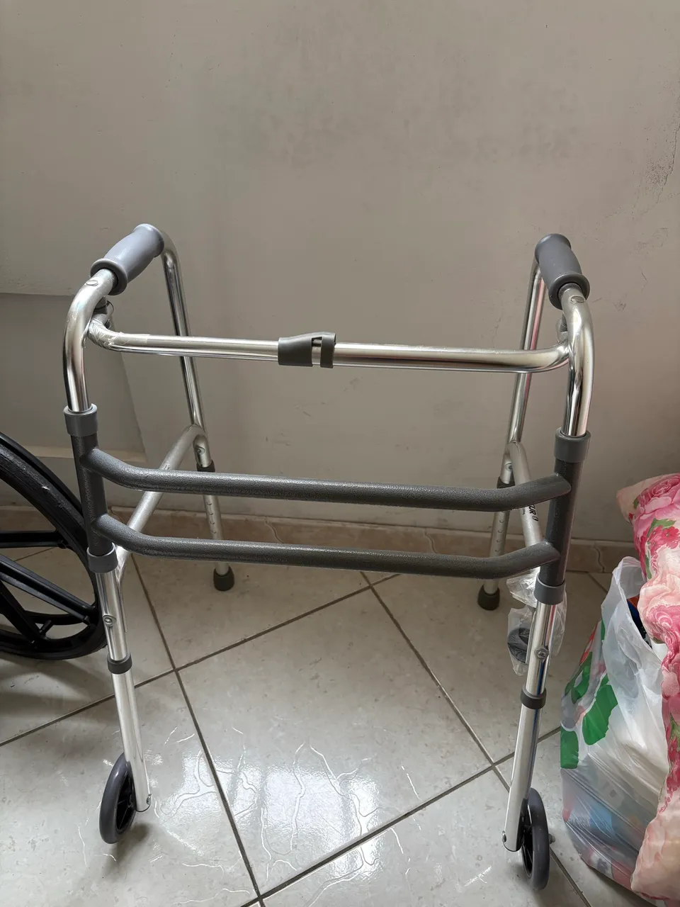Andador com rodas, ideal para auxiliar na locomoção e proporcionar maior segurança. Estrutura resistente e fácil de manusear.