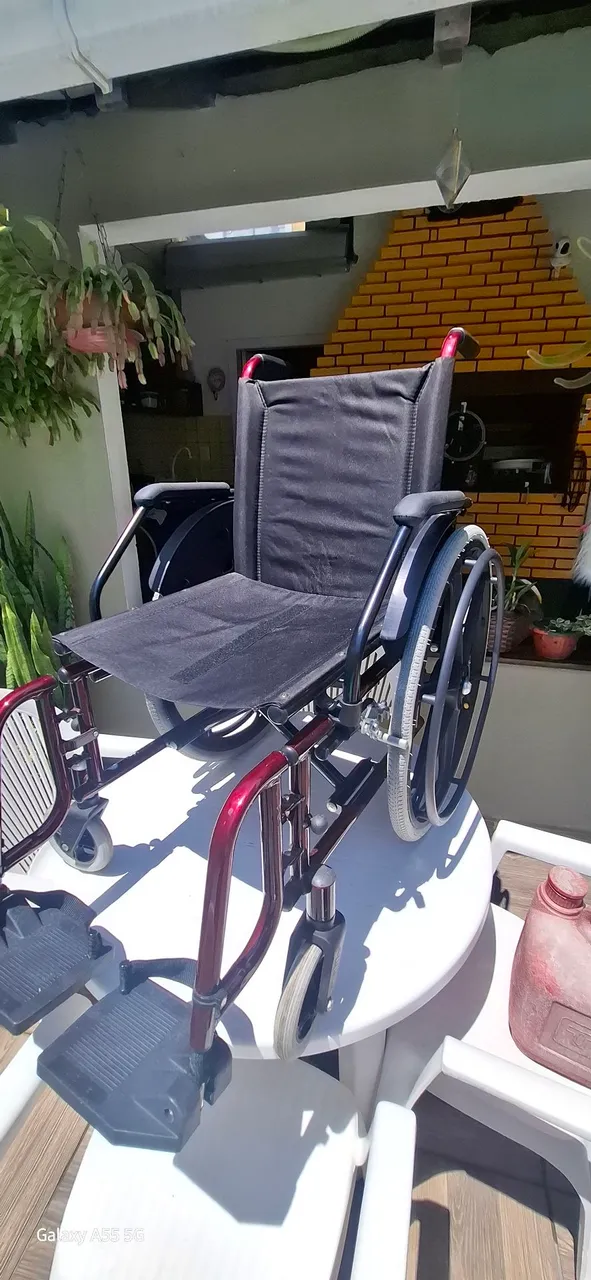 Cadeira de rodas confortável e resistente, ideal para facilitar a mobilidade e proporcionar maior autonomia. Design ergonômico e durável para uso diário.