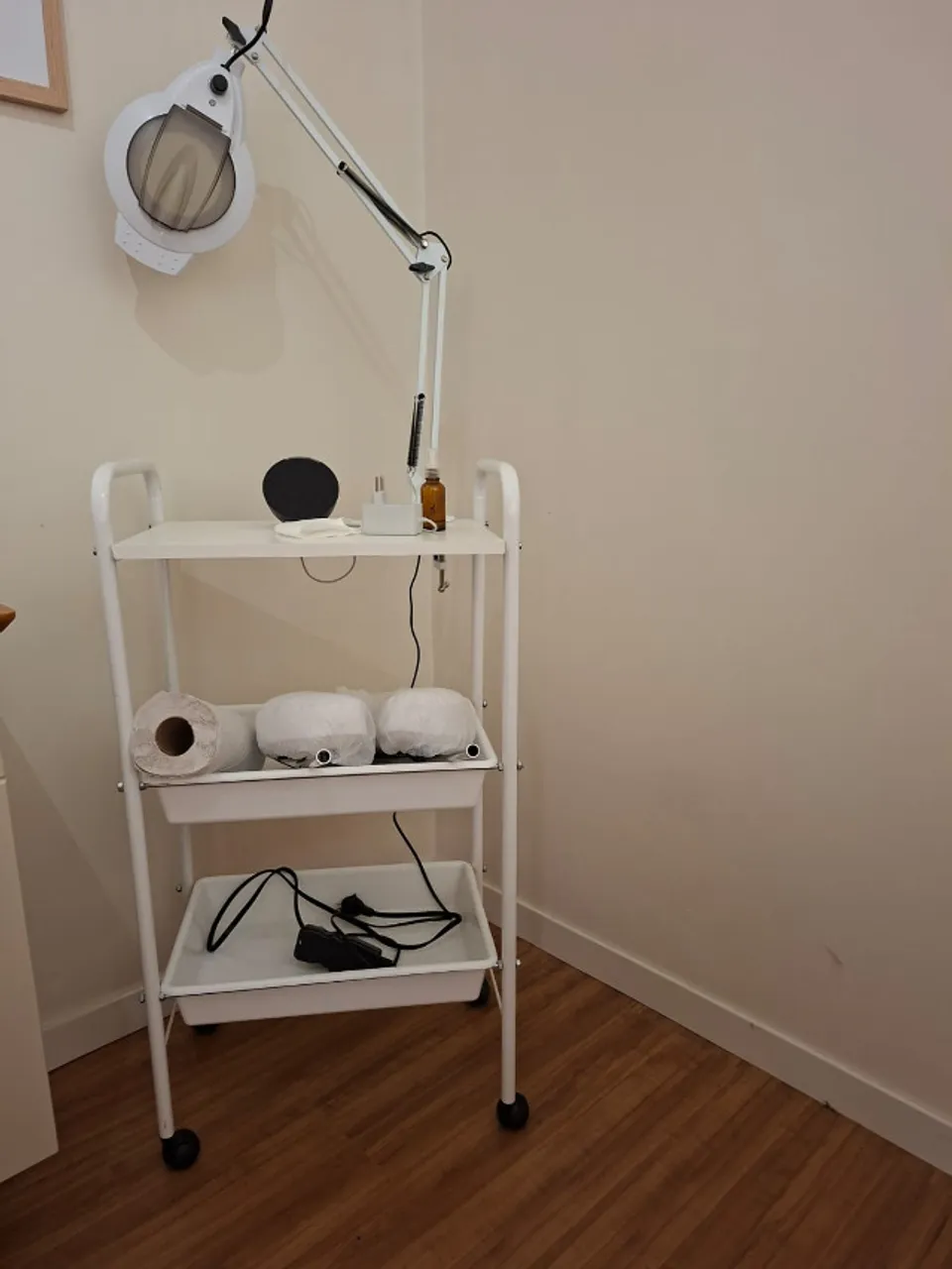 Carrinho auxiliar de estética, perfeito para organizar seus produtos e equipamentos com praticidade e estilo. Ideal para otimizar o espaço e facilitar o seu dia a dia.