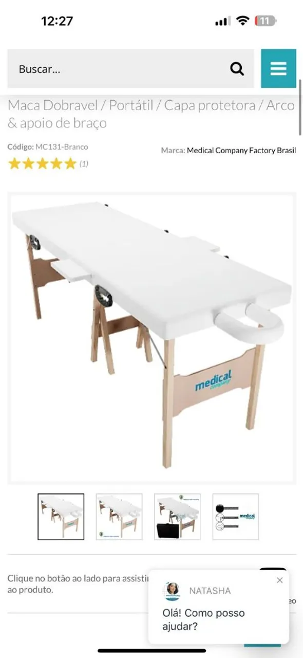 A maca dobrável portátil com capa protetora, arco e apoio de braço é o equipamento ideal para clínicas e consultórios. Possui design moderno e oferece conforto e praticidade para seus pacientes.
