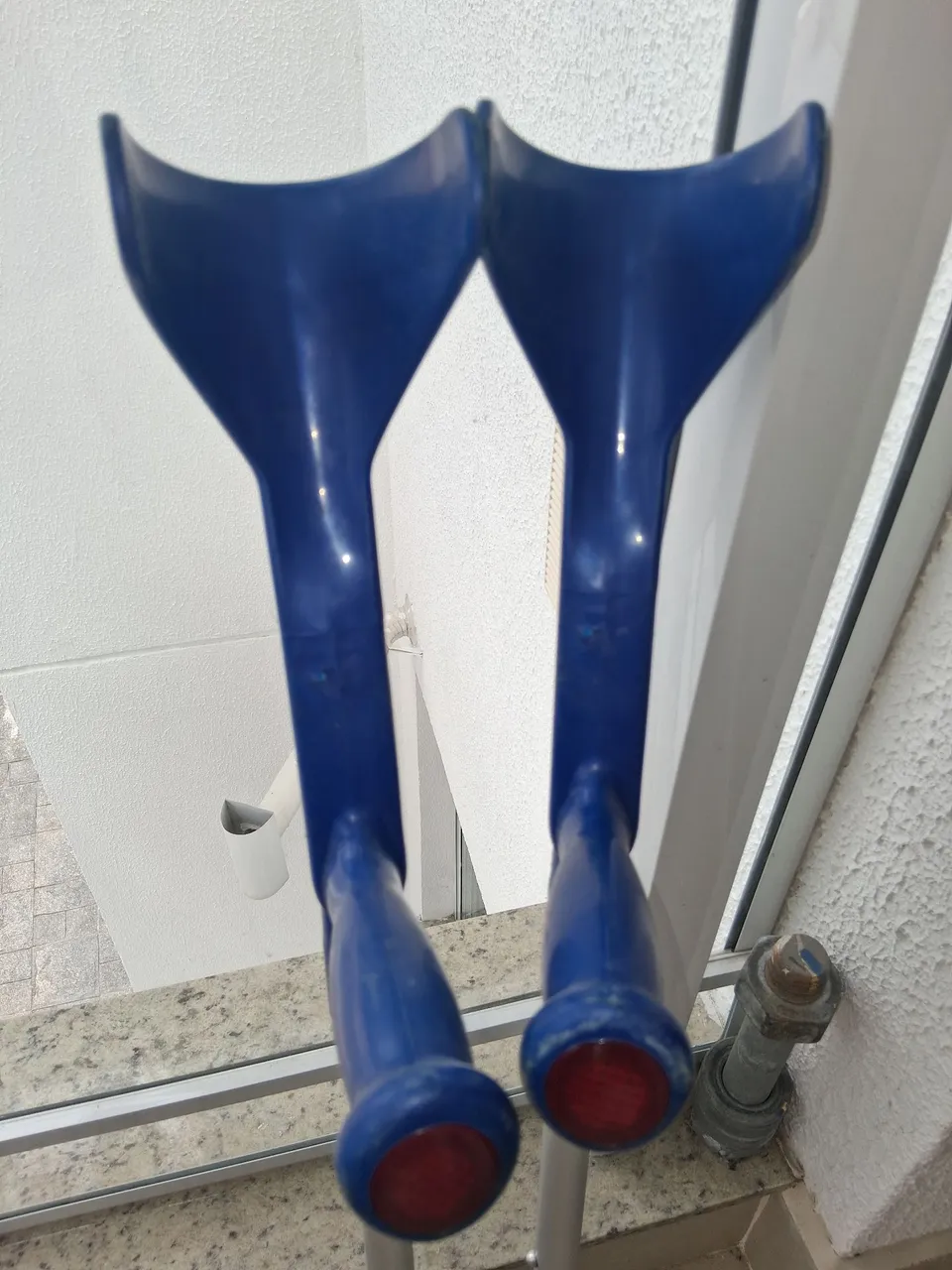 Muletas ergonômicas em perfeito estado, proporcionando suporte e conforto para auxiliar na sua mobilidade. Leves e resistentes, ideais para facilitar o dia a dia.