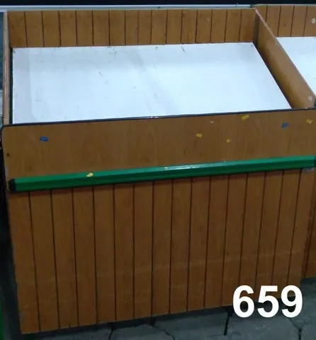 EXPOSITOR P/ HORTI-FRUTTI, MOD. ESTRUTURA METALICA PINTURA NA COR VERDE, REVEST. MADEIRA CLARA C/ ACABAMENTO EM VERNIZ, PARA CHOQUES NA COR VERDE, SAPATAS NIVELADORAS, 120X75X128CM