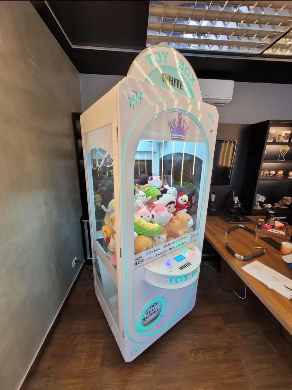Máquina de Pelúcias Toy Box, em excelente estado. Estou vendendo minha grua de pelúcias With, da Toy Box, com: 2 notórios e 1 moedeiro pronta para uso.