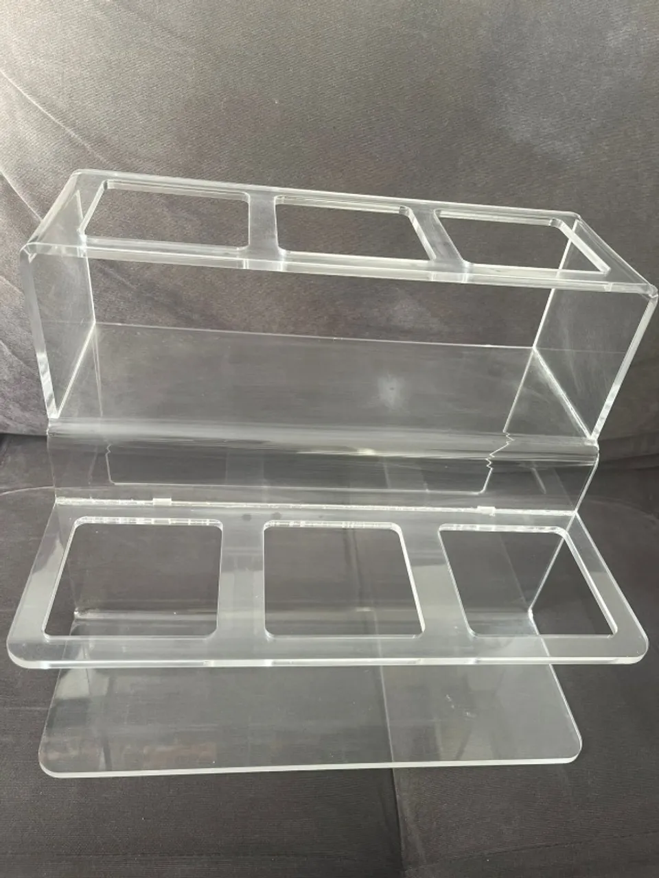 Organizador de acrílico transparente, ideal para otimizar o espaço e manter suas garrafas organizadas e acessíveis. Design moderno e funcional.