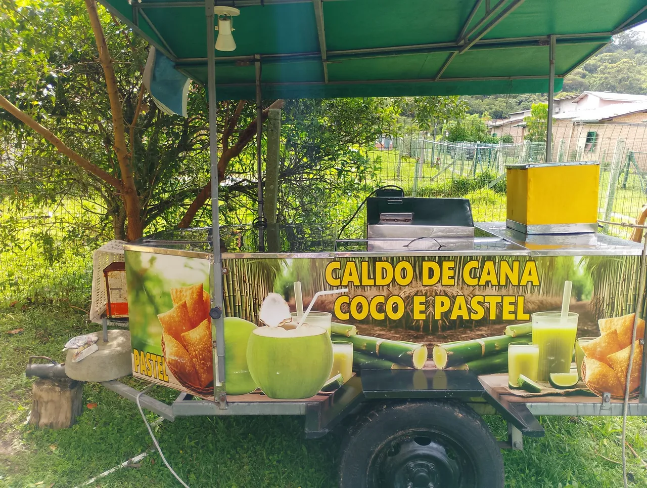 Delicioso carrinho de caldo de cana, coco e pastel. Ideal para quem busca uma opção refrescante e saborosa para seus clientes. Perfeito para eventos, praias ou qualquer lugar com um público sedento por essas delícias!
