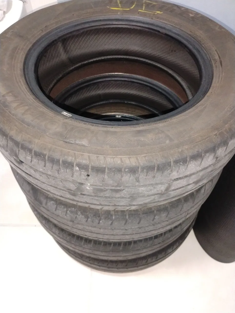 4 pneu Yokohama 175/70/14 sem defeitos, bolhas e nem escamas. Perfeitos para estepe. Estão quase na marca do limite de segurança. Dois traseiros com um pouco mais de borracha e outros dois com um pouco menos.