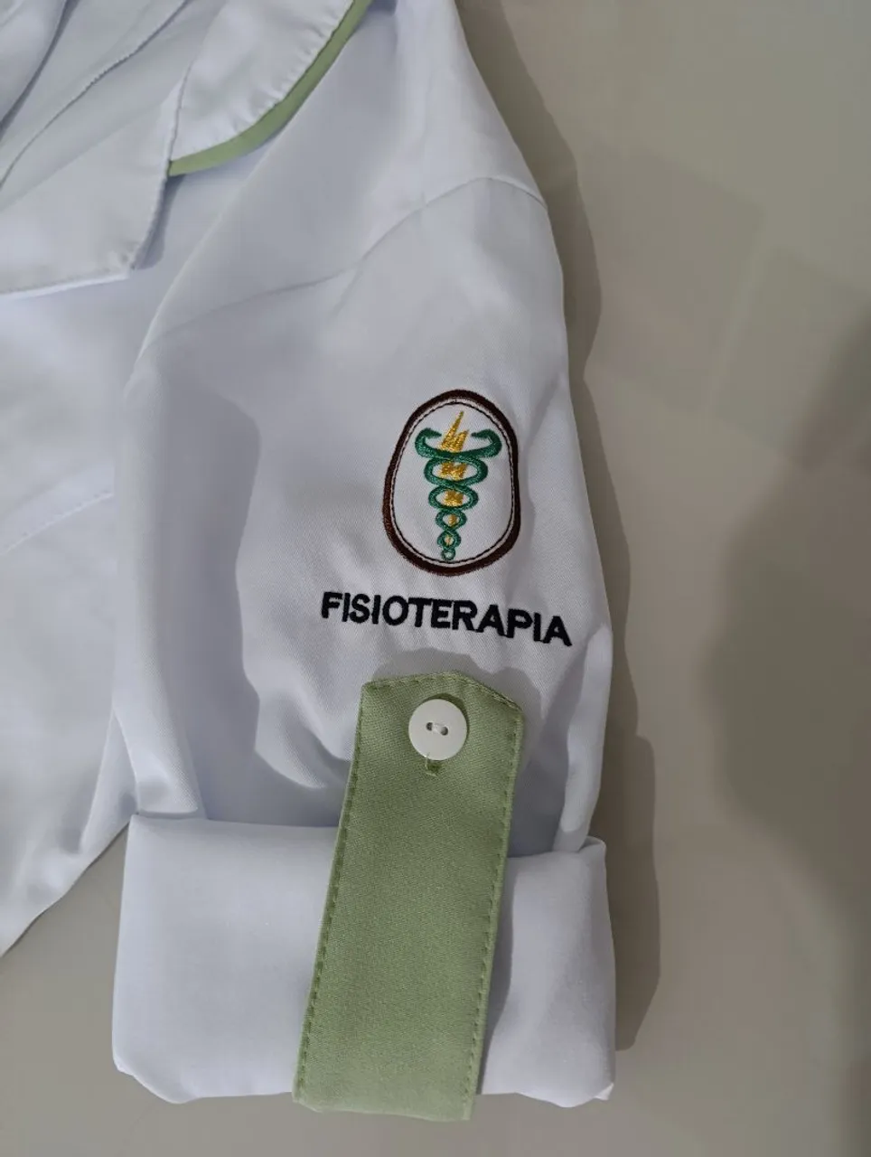 Jaleco de alta qualidade, fisioterapia, pouco usado. Medidas: peito: 34cm, quadril 49cm, distância dos ombros 35 cm, comprimento das mangas 55,5 cm, comprimento total 98 cm. As mangas podem ser dobradas e anotadas, tecido de boa qualidade.