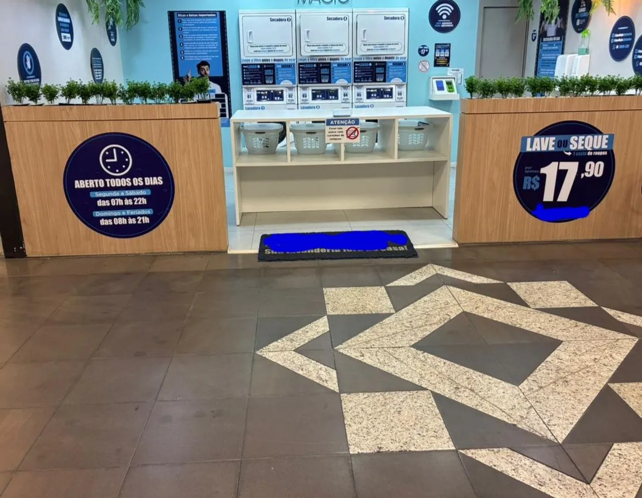 Totalmente equipada com 3 Máquinas de lavar e 3 máquina de Secar Speed Queen( com instalação pronta para a quarta máquina),Totem de pagamento digital,bancadas, longarinas, puffs e decorada com floreiras .
