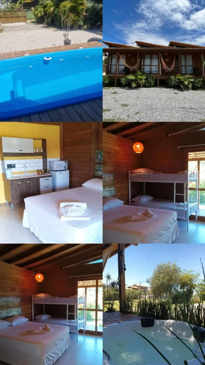 Arrendamento e Venda de residencial na Praia do Rosa com 4 cabanas completas, sendo 3 cabanas completas e + 1 chale de 2 dorm e suíte, copa/ cozinha com churrasqueira, equipadas todas camas novas, frigobar, split, micro ondas, banheiros com blindex, sacada, quiosque e cozinha compartilhada com churrasqueira, piscina, Hidromassagem, 489... ver número