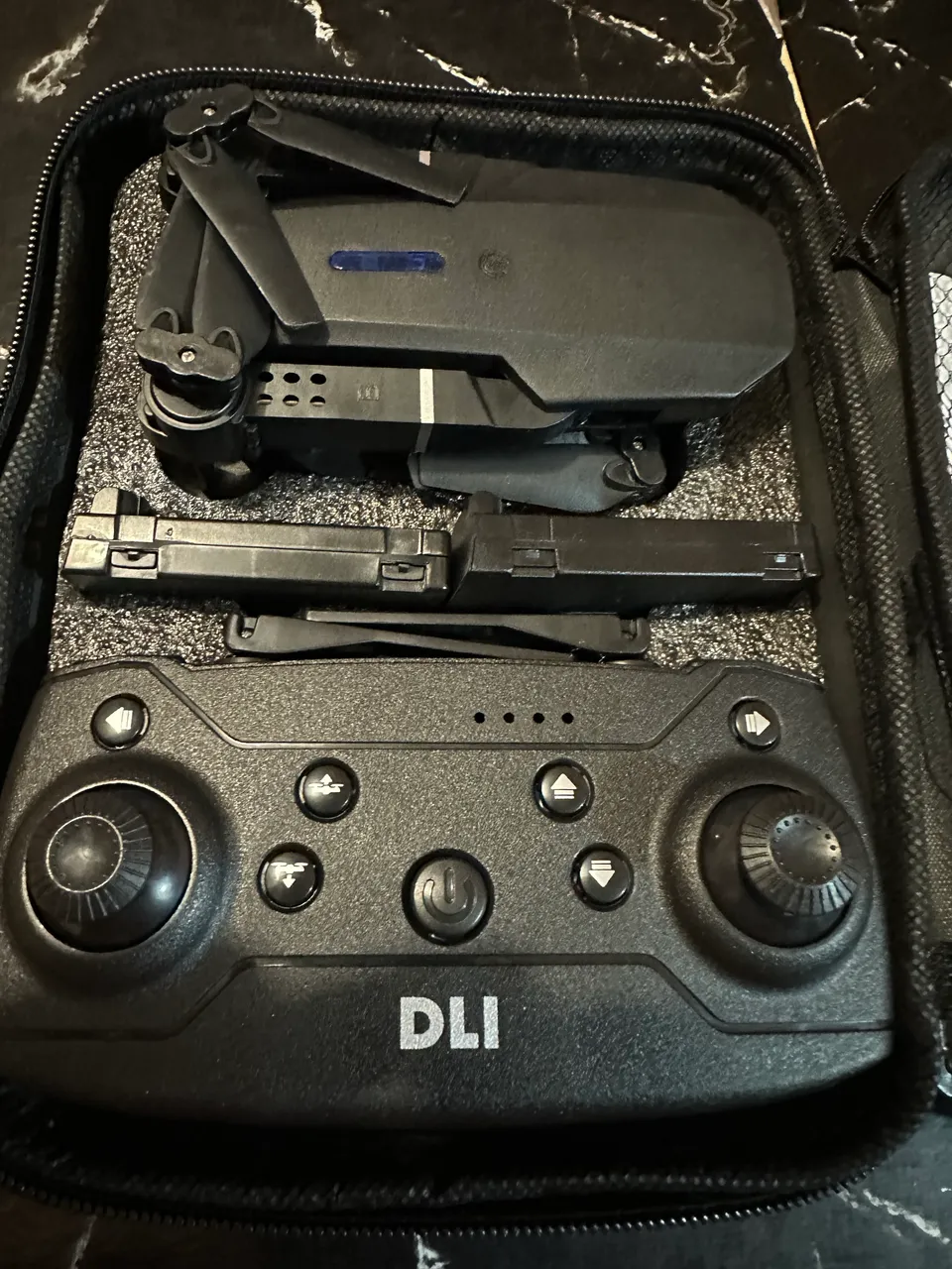 Drone novo, com design moderno e fácil de usar. Ideal para iniciantes, com duas baterias para maior tempo de voo.