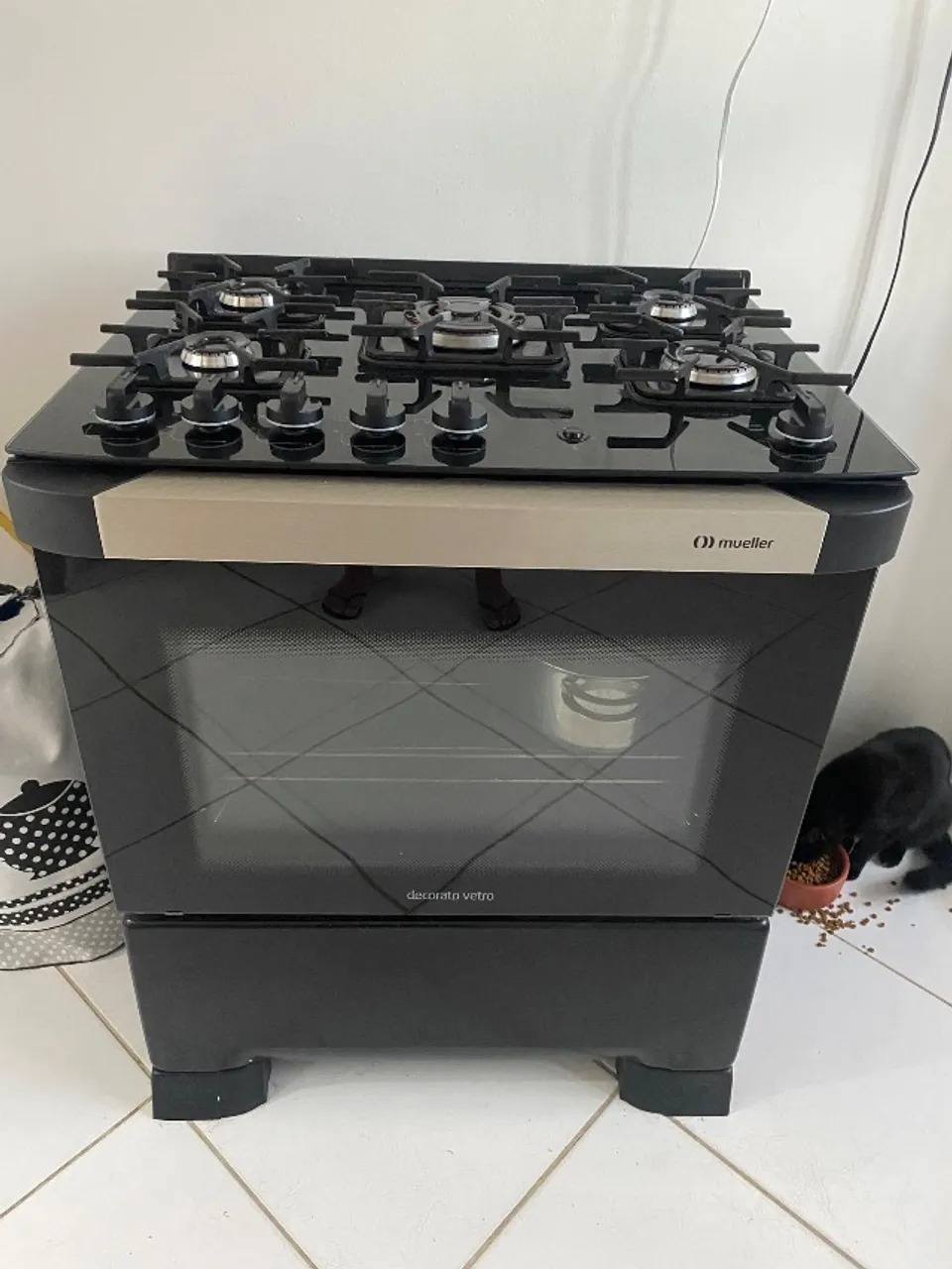 Prepare suas receitas com o Fogão Mueller Decorato Vetro! Design moderno e elegante, com mesa de vidro temperado e forno espaçoso. Perfeito para sua cozinha!