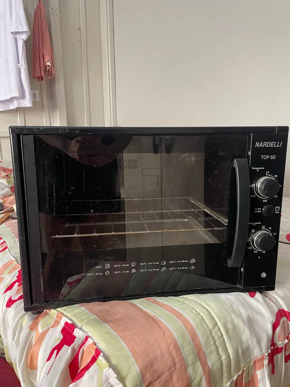 forno com boa capacidade, em bom estado, apenas com algumas marcas de uso na parte interna e funcionando perfeitamente.