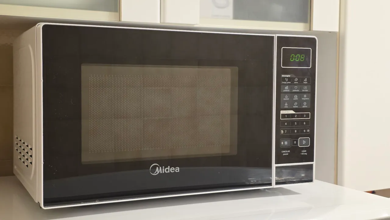Micro-ondas Midea, 20 litros, ideal para preparar suas refeições de forma rápida e prática! Com design moderno e diversas funções, este eletrodoméstico é perfeito para o seu dia a dia.