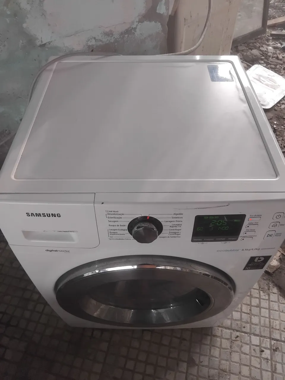 Lava e seca Samsung com tecnologia Eco Bubble, que garante uma lavagem eficiente e cuidadosa com suas roupas. Possui capacidade de 8,5kg e painel digital para facilitar o uso Entrego estalo Com garantia