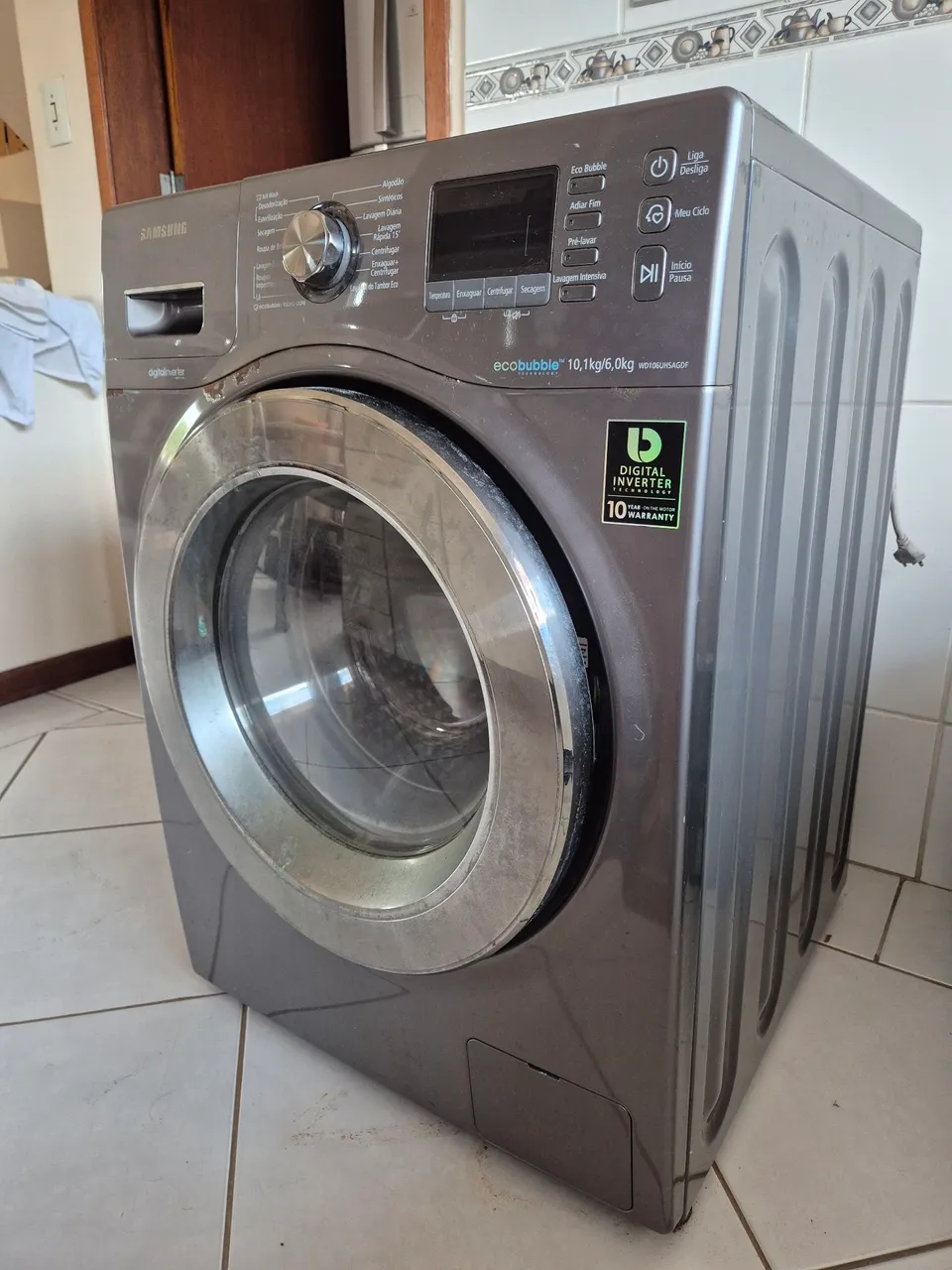 Apresentamos a lava e seca Samsung de 10kg, perfeita para simplificar sua rotina de lavanderia! Com tecnologia digital inverter e recursos avançados, suas roupas saem impecáveis e com cuidado extra. Aproveite a praticidade e eficiência que você merece! A secagem precisa de conserto, segundo o técnico a peça custa 30 reais.