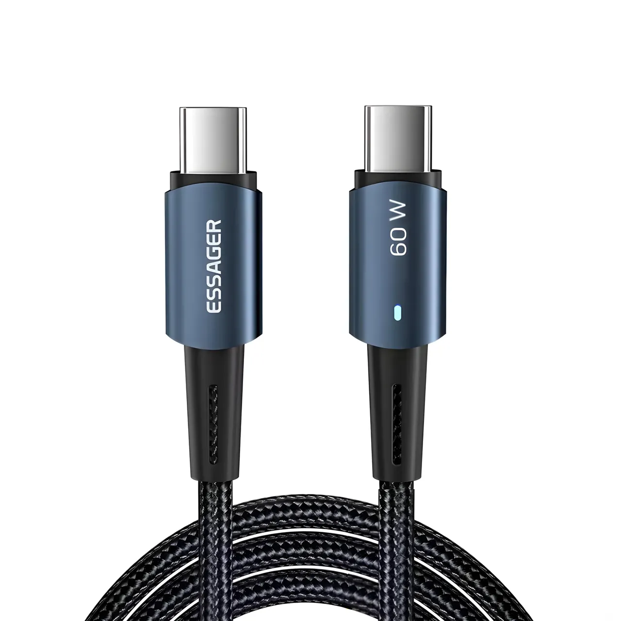 Cabo USB-C para Celular 60W - ESSAGER. Carregamento rápido e seguro para seus dispositivos. Design durável e resistente. Ideal para smartphones, tablets e notebooks.