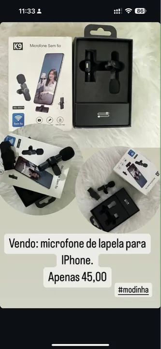 Imperdível: sem uso, microfone sem fio, de lapela para iPhone. Entrada Lightning. Impecável! Torrando.