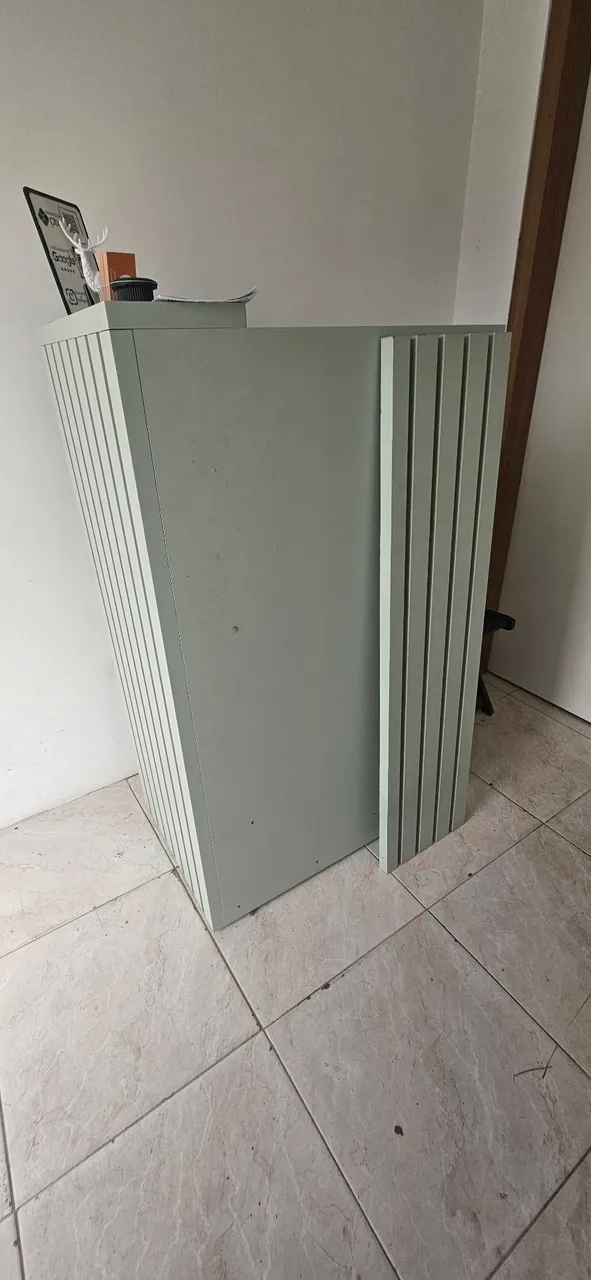 Balcão caixa moderno e funcional, ideal para otimizar o espaço do seu estabelecimento.