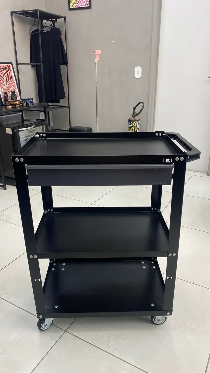 Carrinho multiuso perfeito para organizar seu escritório. Com design moderno e prático, ideal para otimizar o espaço e manter tudo ao seu alcance.