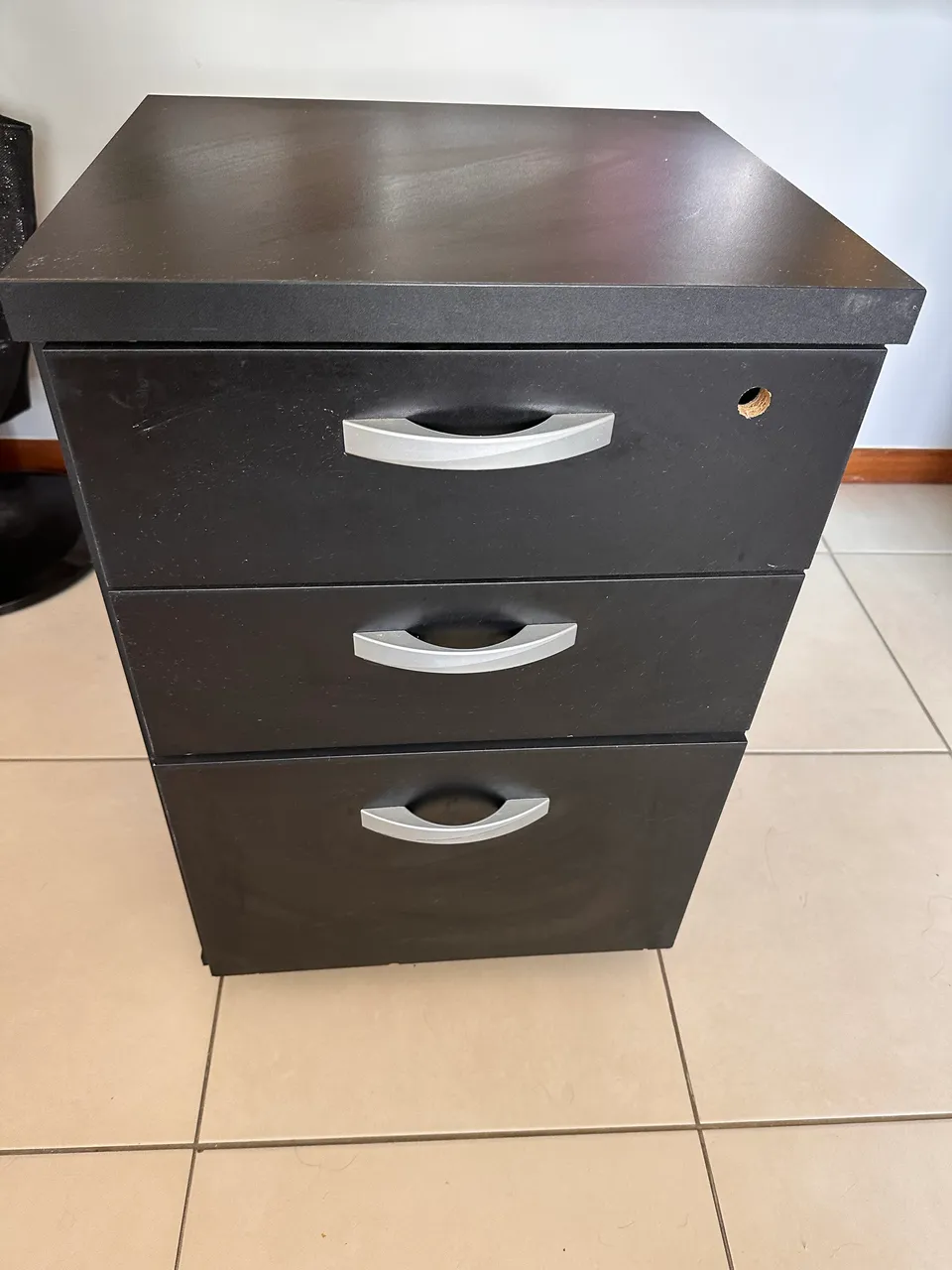 Gaveteiro preto com design moderno e funcional. Perfeito para organizar seu escritório com estilo. Amplo espaço interno para guardar seus pertences.