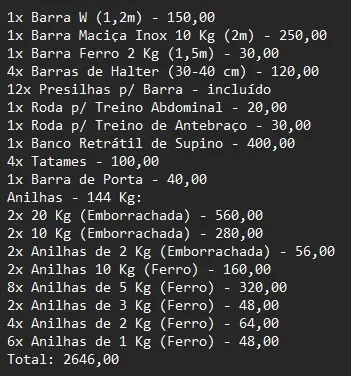 Kit completo para montar sua academia em casa! Inclui barras, anilhas, entre outras pecas que estãona descrição. Ideal para quem busca versatilidade e qualidade nos treinos. Cel.48 9... ver número