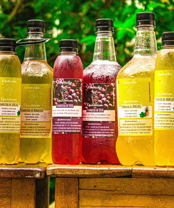 Kombucha Equilibrium - Sabores Deliciosos! Sabores: abacaxi com hortelã, maracujá, uva verde, uva roxa, morango com hibisco, capim-limao com limao-taiti. Produzida com ingredientes naturais e fermentada para uma experiência refrescante e nutritiva. Ideal para quem busca uma bebida saudável e saborosa. Entrega grátis em pedidos acima de R$50 na distância de 15 kM do bairro Roçado.