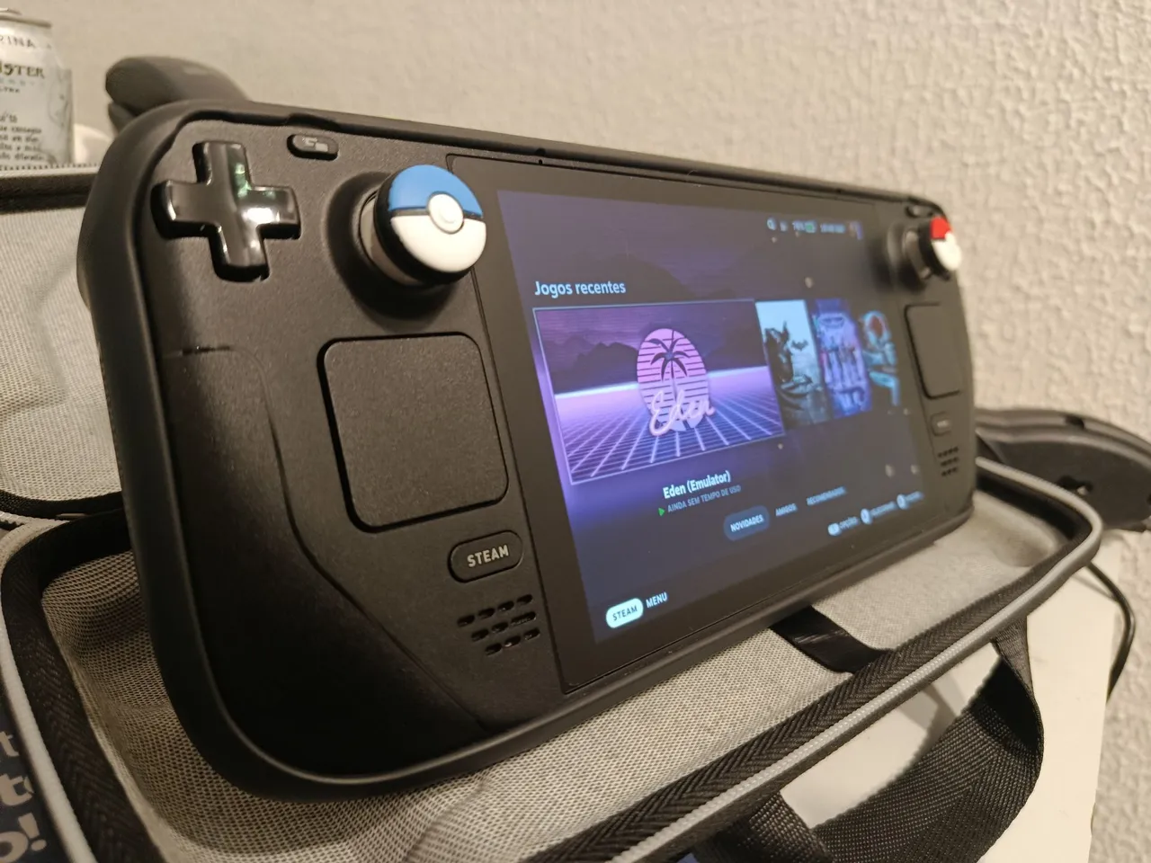 Steam deck 512GB Acompanha bag transporte Carregador Capa de proteção Pelicula fosca aplicada Muito novo saúde bateria em 100% Livre para testes.