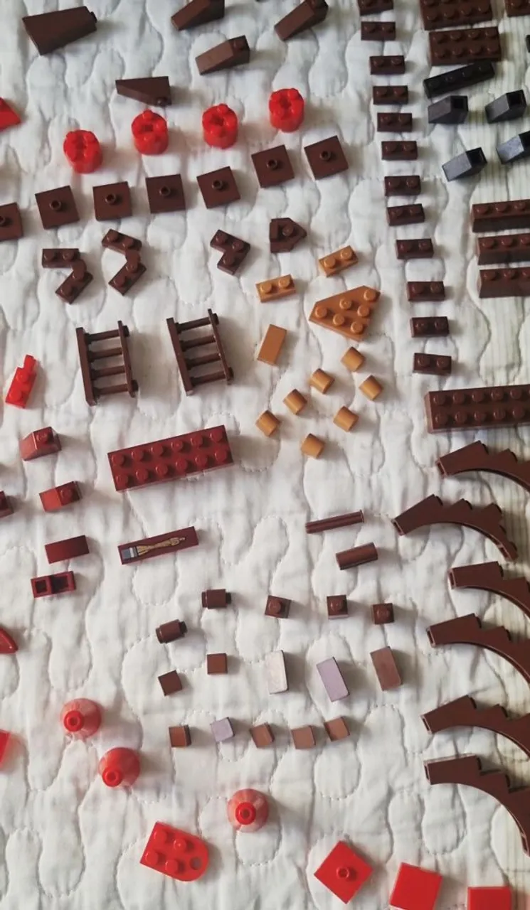 - Tonalidades variadas de vermelho e marrom, úteis para projetos arquitetônicos, cenários, MOCs e customizações