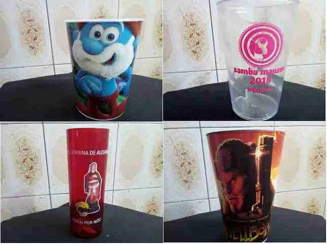 coleçao com 26 copos plastico duro,caneca. tem de bebidas, personagens e outros de brinde. as peças nao sao para ser usadas sao para coleçao. R$ 10,00 a coleçao .(nao inclui despesas postais). cel
