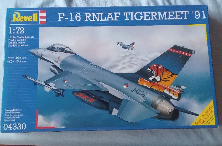 Kit para montar, Modelo: F-16 RNLAF TIGERMEET ' 91 Escala: 1/72 Fabricante: Revell País de origem: Polônia Ano de Fabricação: 1993