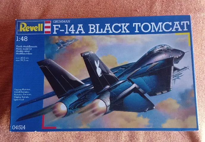 Kit para montar, Modelo: Grumman F-14A Black Tomcat Escala: 1/48 Fabricante: Revell Ano de fabricação: 1997 País de origem: Alemanha - Estados Unidos