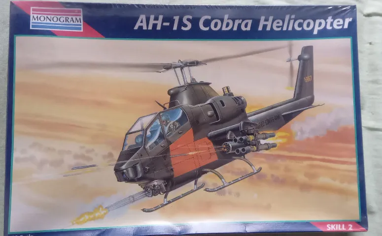 Kit para montar: Modelo: AH - 1S Cobra Helicopter Escala: 1:48 Fabricante: Monogram Ano de fabricação: 1995 País de origem: Estados Unidos-Alemanha