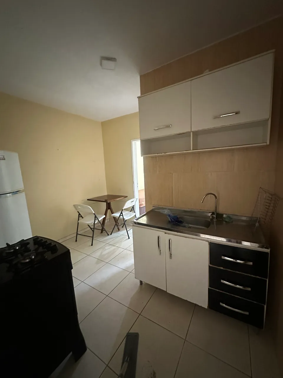 Este apartamento conta com mobília básica, cama, fogão, pia, geladeira, box de vidro no banheiro .