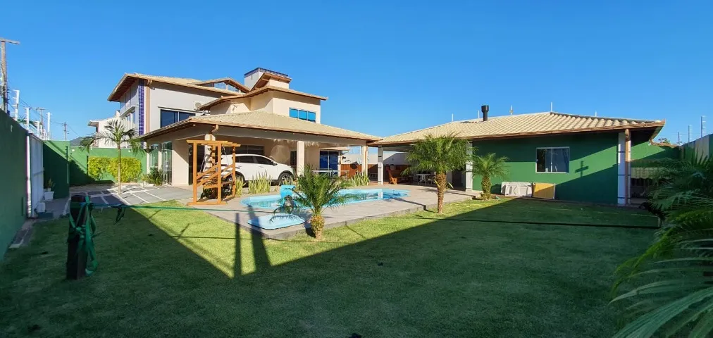 Casa com dois pavimentos, sendo um quarto no piso inferior e uma suíte no piso superior, ambos com móveis planejados, wc social, cozinha com móveis planejados e ampla sala de estar e jantar, garagem para dois carros. Ar-condicionado nos quartos e sala. Canil para animal de grande porte e uma boa área gramada que pode ter uma pequena quadra.