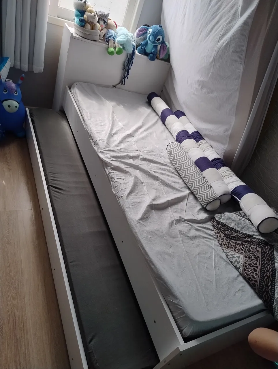 Bicama com Colchão Incluso e Baú Embutido Multimóveis! Produzida em MDP com acabamento em pintura UV,garantindo durabilidade e resistência, suporta até 100kg na cama principal e até 70kg na cama auxiliar (possui rodízios que facilitam a movimentação) e possui baú embutido, que oferece amplo espaço para guardar roupas de cama e outros pertences, deixando tudo sempre à mão.Versátil,a bicama pode ser montada tanto do lado esquerdo quanto do direito, adaptando-se às suas necessidades. Para adicionar conforto, acompanha 2 colchões D23 (até 70kg) em espuma 100% poliuretano e tecido 100% poliéster, certificados pelo INMETRO e com tratamento antiácaro, antialérgico e antimofo, proporcionando noites de sono mais tranquilas e saudáveis.